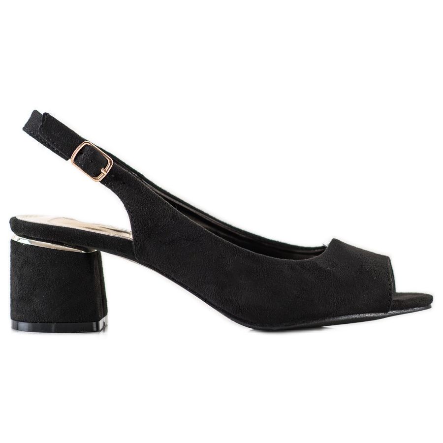Visina pete od 6 cm pruža ugodnu udobnost nošenja, a omogućuje vizualno produljenje nogu. Potplat, gladak i izrađen od plastike, osigurava stabilnost i izdržljivost na svakom koraku. Sandale se kopčaju kopčom što omogućuje savršeno pristajanje uz nogu.