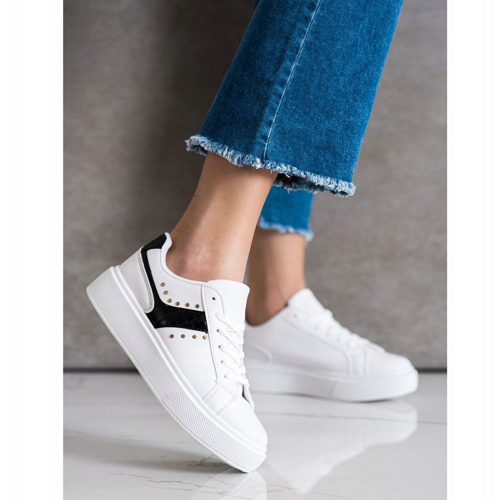 SHELOVET Ležerne tenisice od eko kože bijela crna