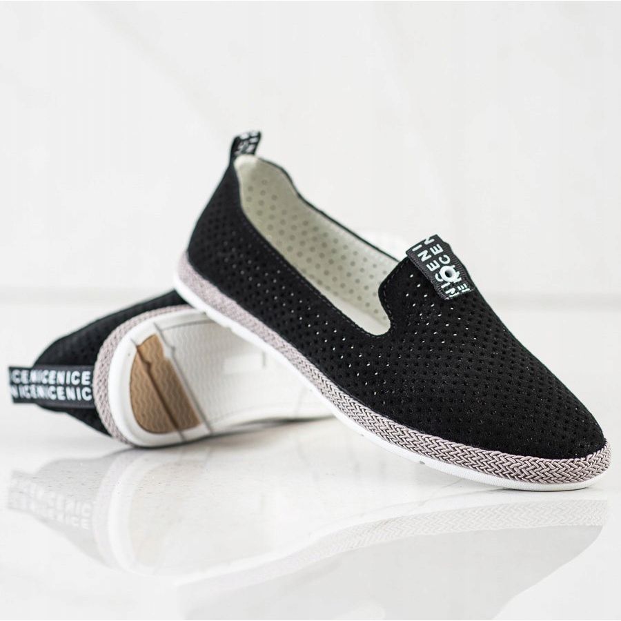 Prirodna koža od koje su izrađeni ovi natikači jamči ne samo izdržljivost, već i prozračnost, što osigurava udobnu upotrebu tijekom cijelog dana. Ažurni ukras na gornjoj površini dodaje suptilnost i karakter, izdvajajući se od klasičnih modela. Dodatno, meka zatvorena peta i crni umetci s bijelim natpisom naglašavaju moderan izgled cipela.