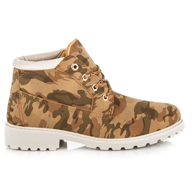 Plastični potplat sa protektorom i ravna peta visine 3 cm jamče stabilnost pri svakom koraku. Okrugli vrh i mekana, ugrađena peta čine ove čizme ne samo praktičnima, već i efektnima. Kamuflažni uzorak dodaje karakter, savršeno pristajući ležernom stilu.