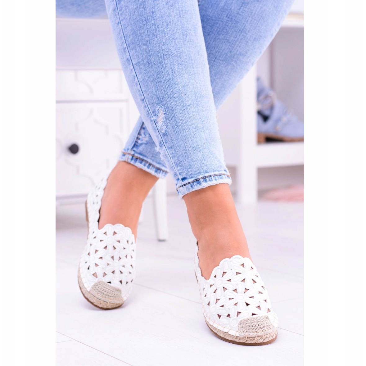 Pojedinosti: Lu Boo ženske balerinke bijele espadrile Macarena cvijeće bijela