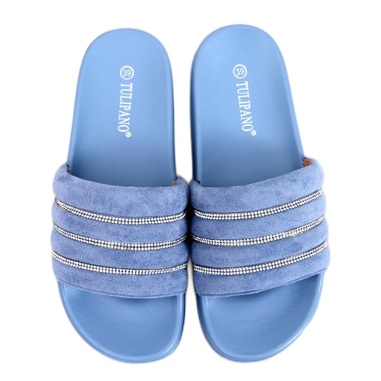 Pojedinosti: Lynne plavi klizači sa kamenčićima plava