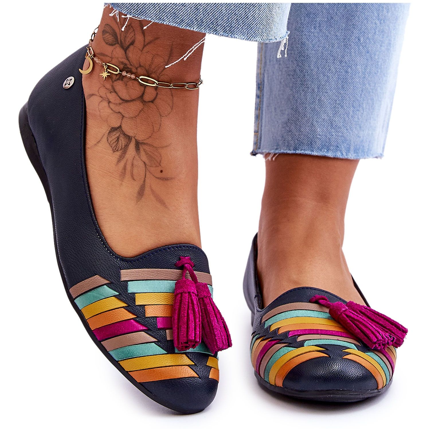 Maciejka kožne balerinke s resama tamnoplave 04016-17 višebojan