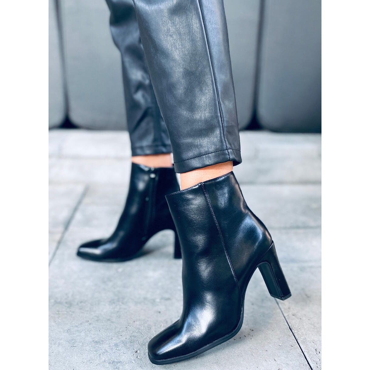Madison Black Pu gležnjače na visoku petu savršen su izbor za žene koje cijene spoj elegancije i svakodnevnog stila. Izrađene od visokokvalitetnih materijala, ove crne gležnjače s četvrtastim vrhovima savršeno odgovaraju aktualnim trendovima. Uredan kroj i praktični patentni zatvarač sa strane gornjišta čine njihovo nošenje pravim užitkom.