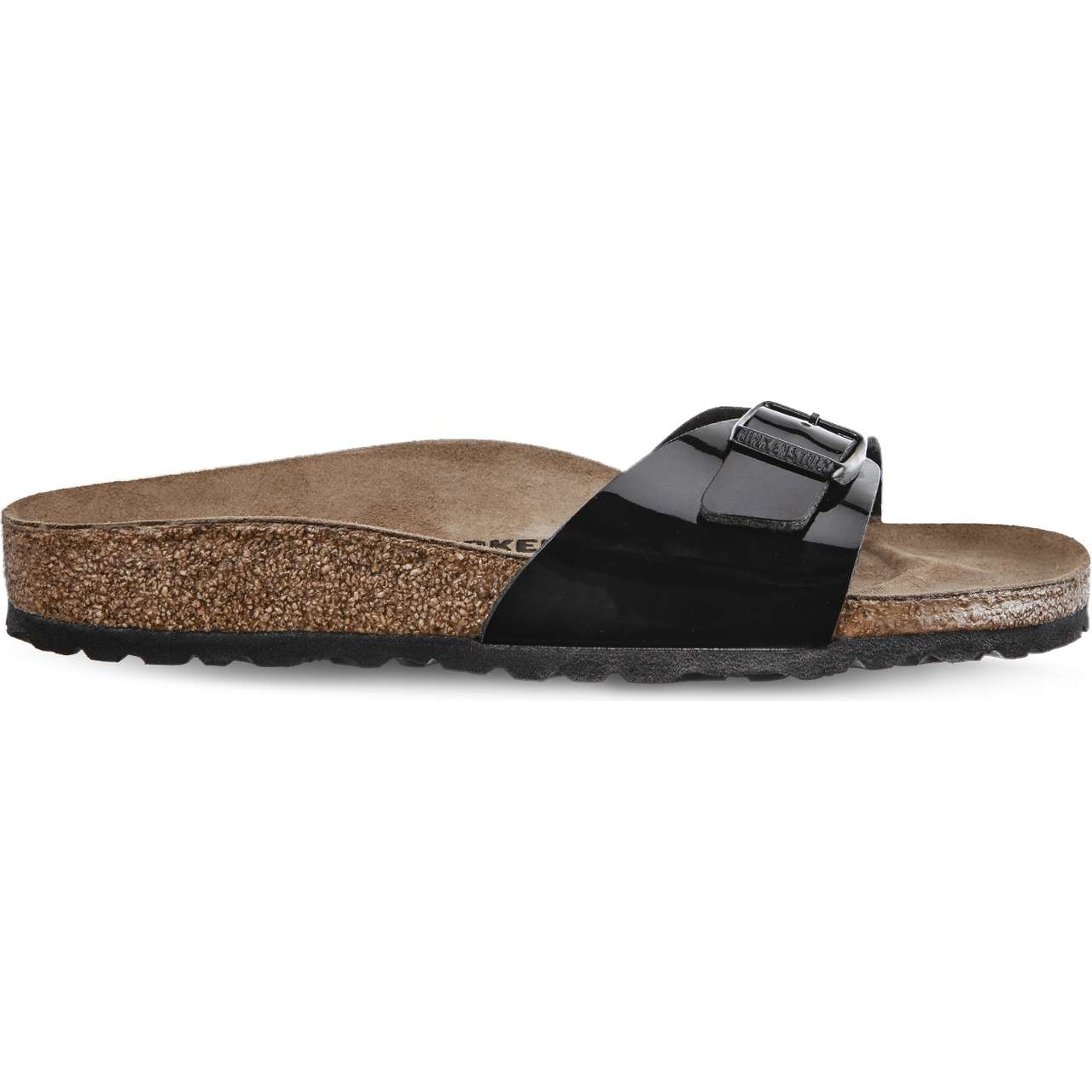Klasična i praktičnost u jednom. Madrid 303 je minimalistički, lakirani Birkenstock flip flops koji kombiniraju elegantni, crni izgled s ikoničnim, anatomcilly profiliranim umetom. Savršeno za ljeto - bosonoge istrošene bosonoge ne uzrokuju ogrebotine ili opekline, a izdržljivi materijali jamče dugo vremena.