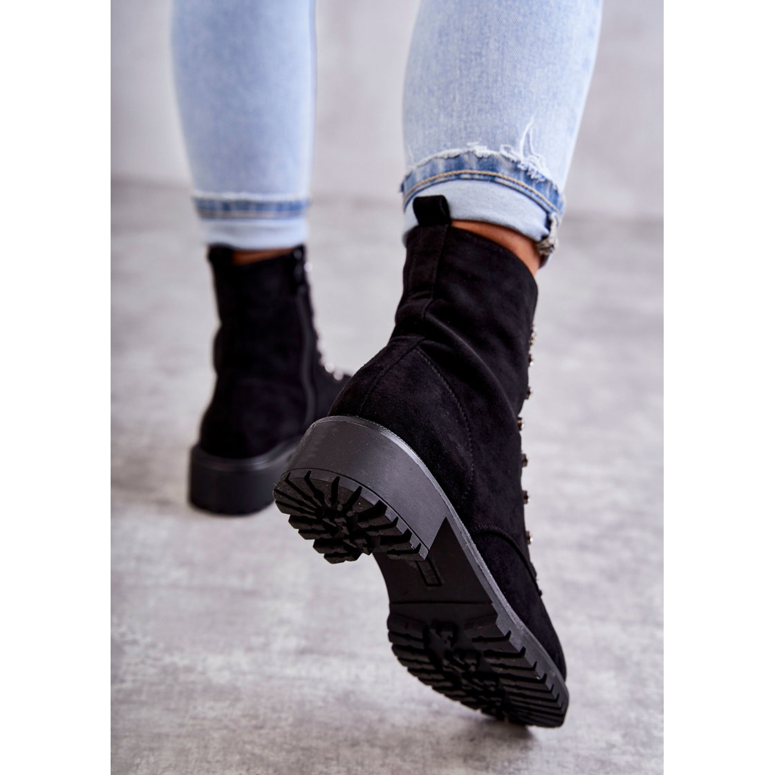 - Model: Gležnjače od brušene kože s ukrasnim naramenicama
