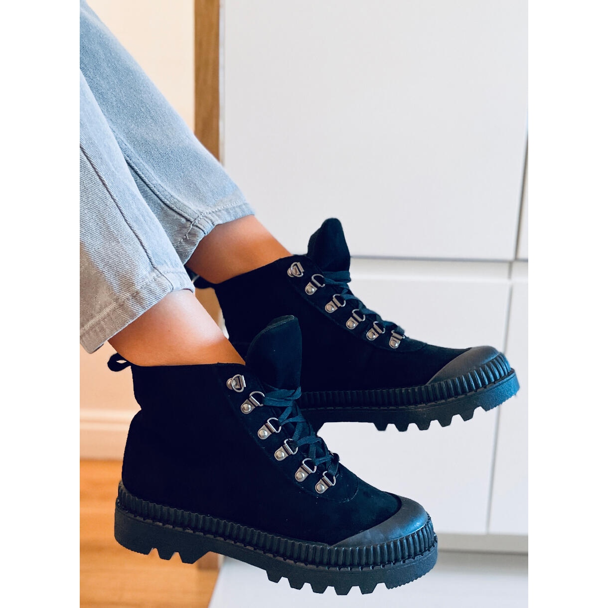 Predstavljamo vam Malyen Black ženske trekking tenisice proizvođača PA1 koje spajaju moderan dizajn s funkcionalnošću. Ove crne tenisice privlače pozornost svojim ikoničnim dizajnom na visokom, trapezoidnom potplatu, koji ne samo da naglašava individualni stil, već jamči udobnost na svakom putu.