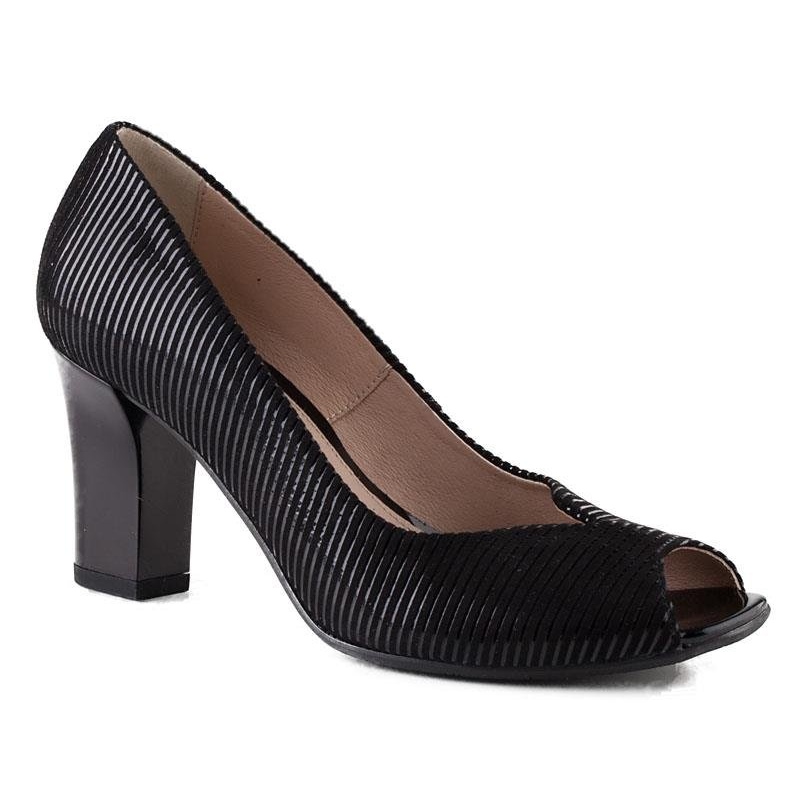 Marco Shoes salonke elegantan su izbor za svaku modernu ženu koja svom stilu želi dodati dašak sofisticiranosti. Izrađene od visokokvalitetne crne prirodne antilop kože, ove cipele savršeno spajaju klasičan i moderan dizajn. Izražajne ukrasne pruge na gornjem dijelu privlače pažnju i daju im originalan karakter.