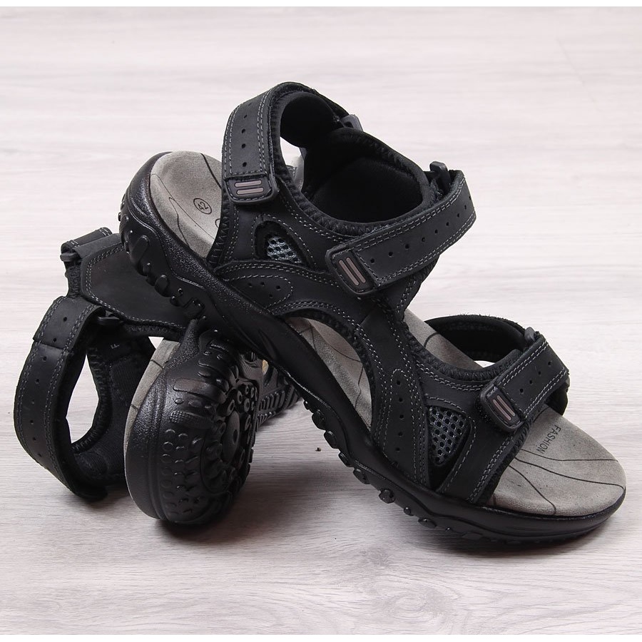 **Muške kožne sandale na čičak, crne McKeylor 8654**