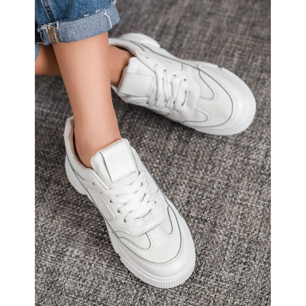 Ženske MCKEYLOR cipele s platformom u bijeloj boji savršen su izbor za žene koje žele spojiti udobnost s modernim stilom. Ove sportske cipele odlikuje se visokokvalitetnim sintetičkim materijalom koji osigurava izdržljivost i udobnost nošenja.