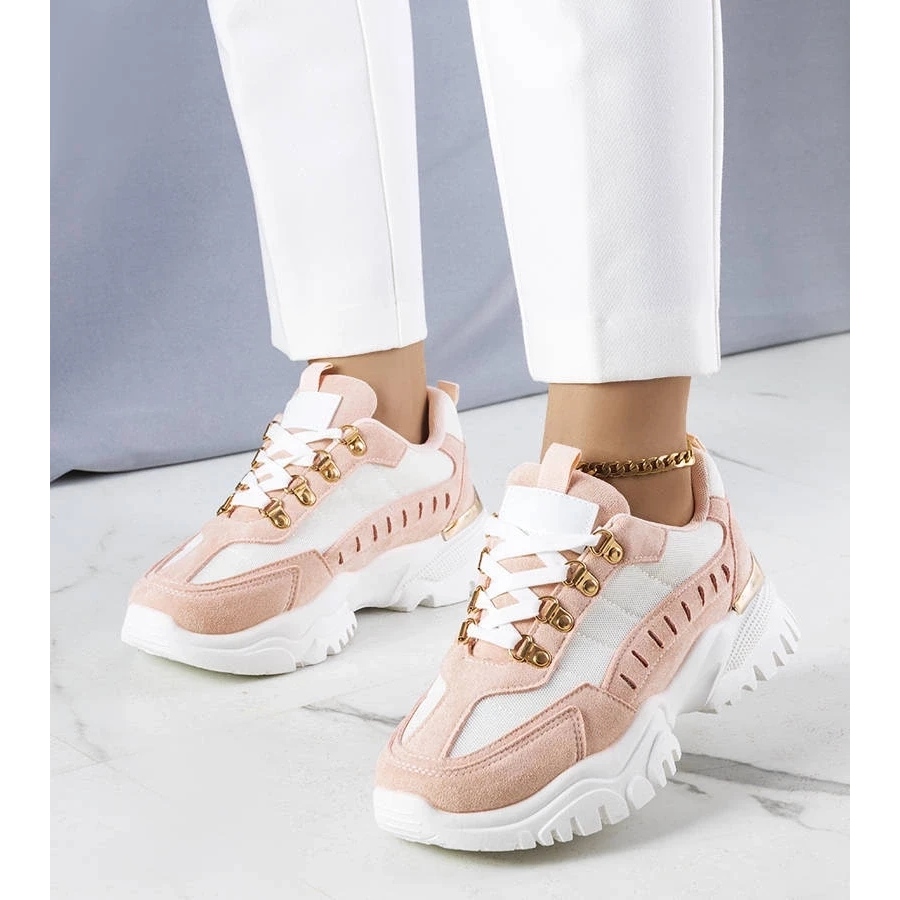 Bijela s ružičastim naglascima znači da se tenisice lako mogu kombinirati s raznim stilizacijama, od ležernijih do elegantnijih. Osim toga, guma izrađena od gume jamči izdržljivost i snagu obuće.