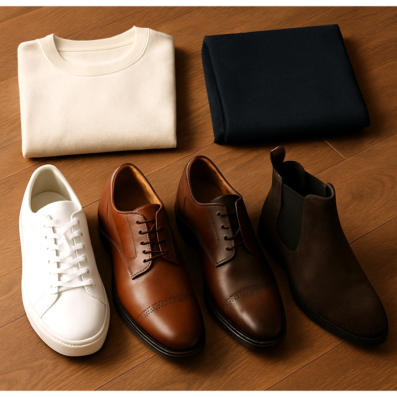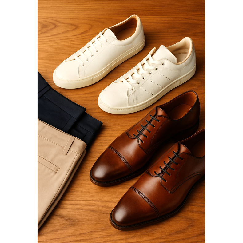 Uobičajeni projekti Achilles Low (ako proračun dopušta) ili Adidas Stan Smith / Koio (srednji proračun). Ovo su najuniverzalnije cipele – idu uz sve.