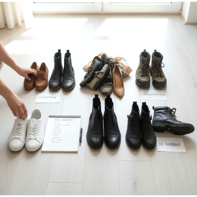 Korak 1: Inventar – izvaditi sve cipele iz ormara i procijeniti svaki par. Jesu li udobne? Nosite li ih? Jesu li u dobrom stanju? Odgovaraju li vašem trenutnom životnom stilu?