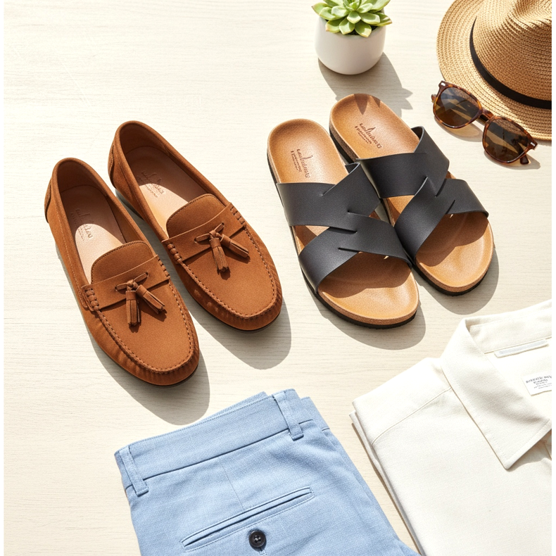 Četvrti par su cipele za tople dane koje su elegantnije od tenisica, ali manje formalne od cipela. Kožne natikače ili mokasine savršen su izbor za proljeće i ljeto. Možete ih nositi bez čarapa, uz zarolane chinos hlače ili svijetle traperice, stvarajući ležeran, ali elegantan look.