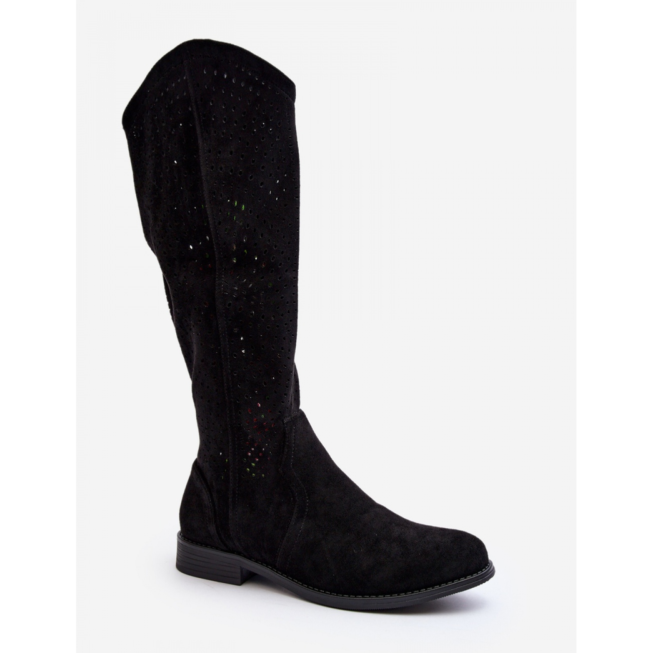 Postavite stabilnu, ravnu petu s visinom od 3 cm, osigurajte utjehu tijekom dana. Gornji dio otvorenog rada, koji doseže koljeno, daje im jedinstveni karakter, a zaobljeni nos naglašavaju klasični rez kozaka.