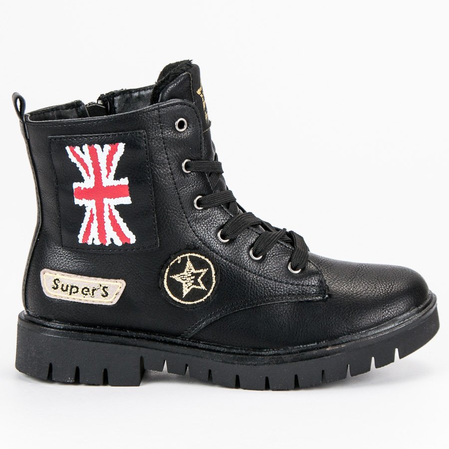 American Club - elegantne, crne gležnjače za djevojčice koje kombiniraju rock karakter sa svakodnevnom udobnošću. Izrađene od ekološke kože, u stilu bovver čizama, privlače pažnju zakrpama i modernim krojem - savršene za djevojke koje se vole istaknuti u hladnijim danima.