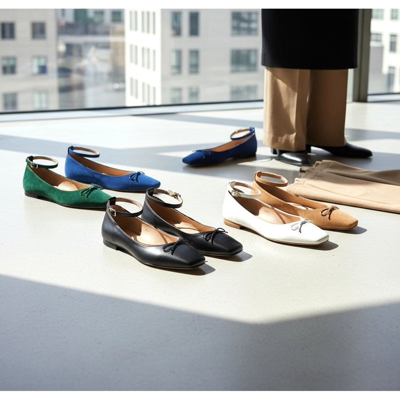Balerinke s četvrtastim vrhom posebno dobro stoje uz hlače ravnih nogavica i pencil suknju. Nošene uz elegantno odijelo ili uredski komplet savršena su alternativa visokim potpeticama - ostaju elegantne dok osiguravaju udobnost tijekom cijelog radnog dana.