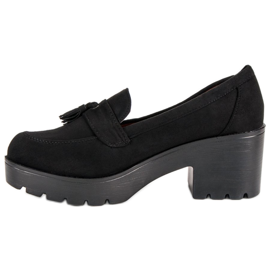 Otkrijte eleganciju i udobnost s mokasinkama. Kreacije u crnoj boji koje savršeno spajaju stil sa svakodnevnom funkcionalnošću. Ove jedinstvene cipele na visoku petu rijetka su, ali iznimno zanimljiva kombinacija koja će dodati karakter svakom stajlingu.