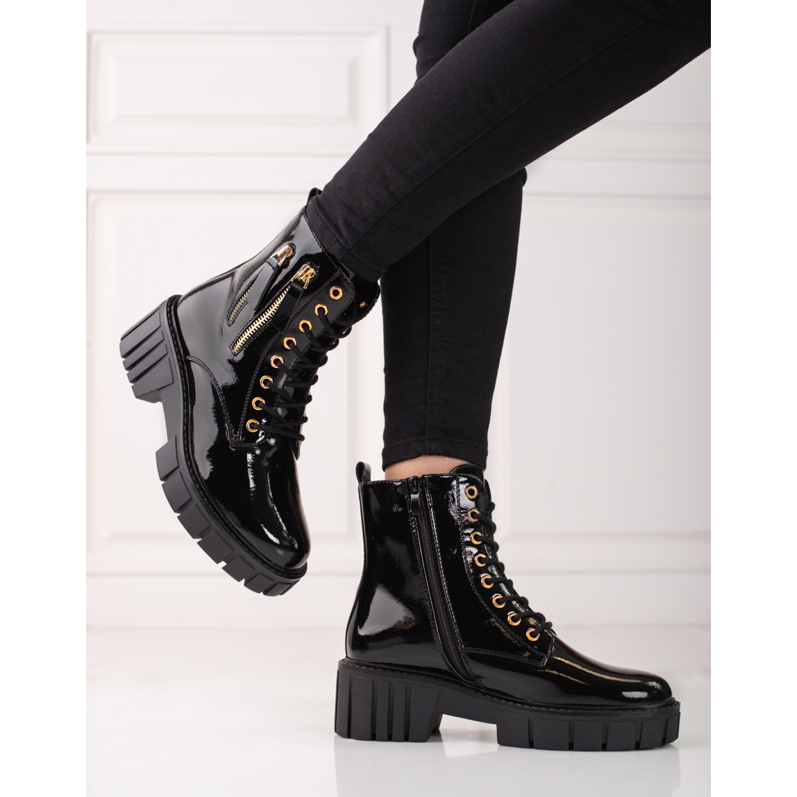 **Goodin Modne trapper čizme s ukrasnim patentnim zatvaračima - crne**