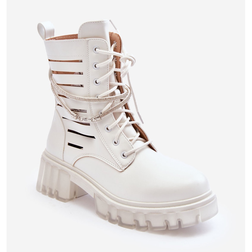 Modne čizme radnici s ukrasnim remenom - Rocky (bijeli)
