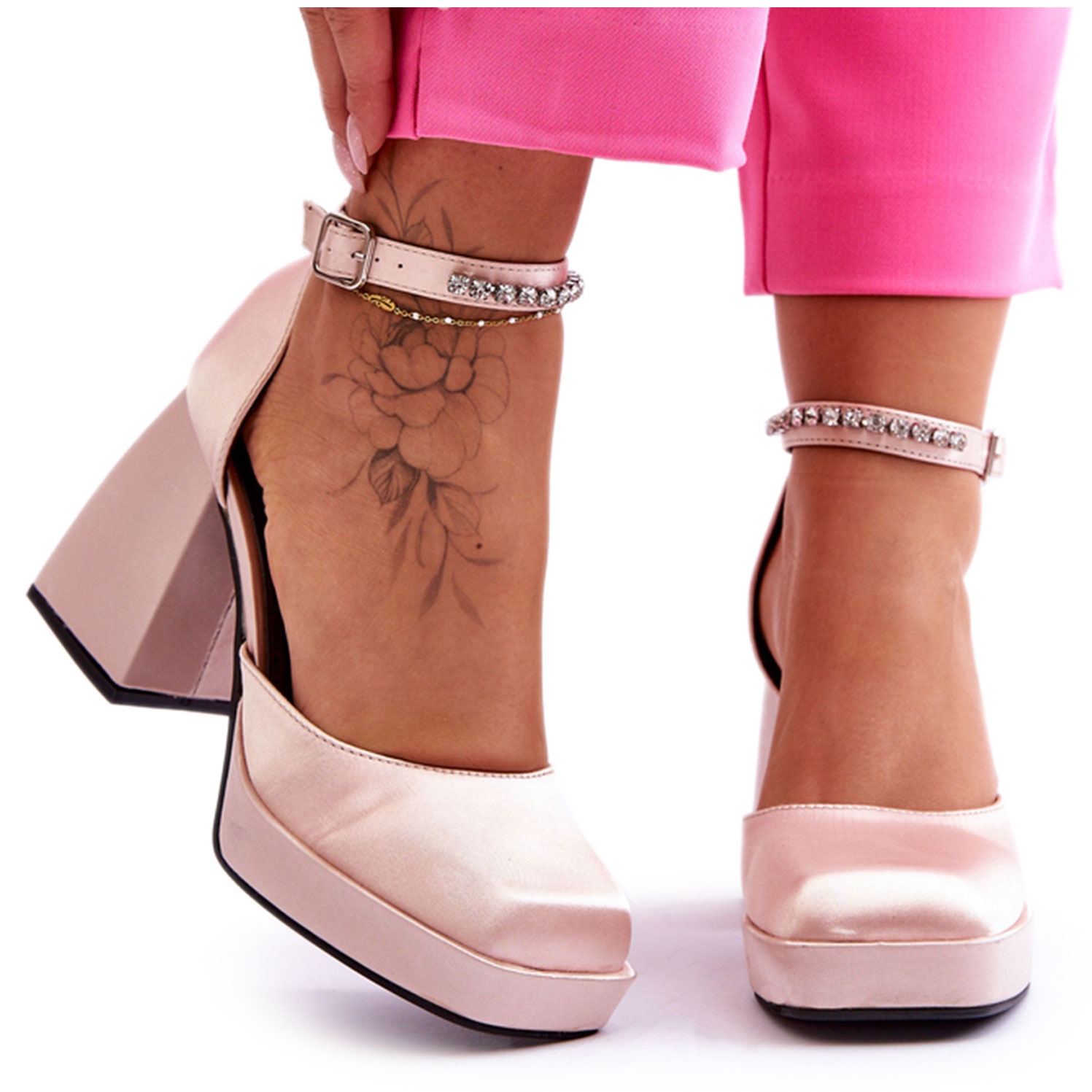 Ukrućena peta jamči dobru stabilizaciju stopala, što je važno pri nošenju visokih peta. Moderne salonke na masivnu potpeticu sa štrasom pristaju uz brojne stilove, od formalnih, preko poslovnih, do večernjih izlazaka.