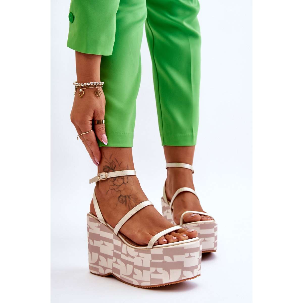 FS1 FS1 Moderne sandale na klin s uzorcima bež Claria smeđa
