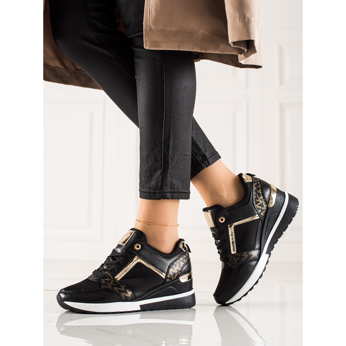 Pojedinosti: TRENDI Moderne tenisice na klin crna zlatni