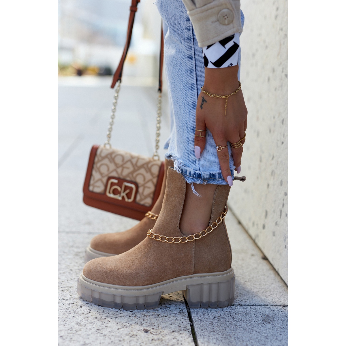 Elegantne, bezvremenske čizme izrađene od prirodne antilop kože koje će vašim stilizacijama pružiti poseban karakter. Suptilni izrezi na stranama gornjeg dijela, odvojivi dekorativni lanac i praktična brava sa strane kombiniraju estetiku s praktičnošću upotrebe.