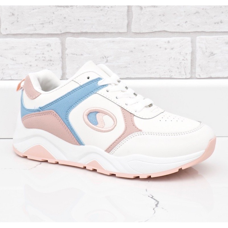 Detalji: Modne bijele sportske cipele BO-186 bijela ružičasta
