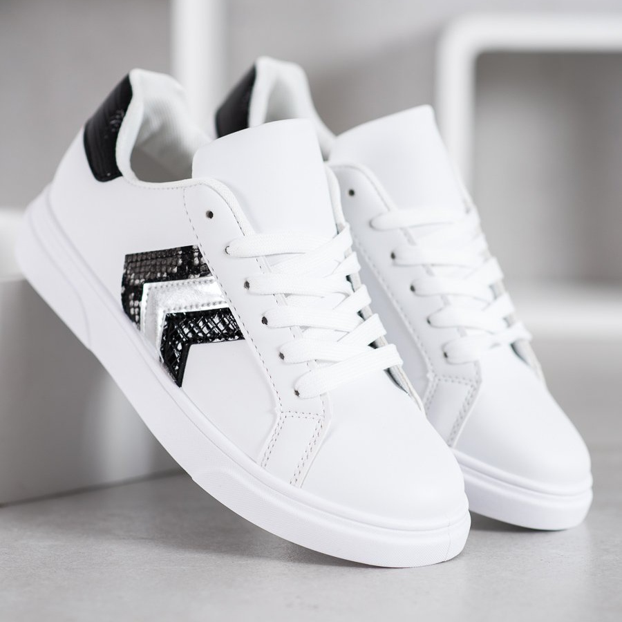 SHELOVET Modne cipele od eko kože bijela crna siva