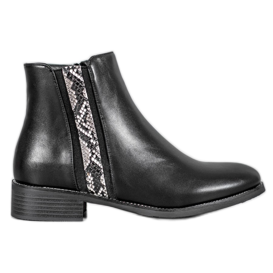 Otkrijte jedinstvene crne Filippo ženske gležnjače s elegantnim naglaskom! Izrađene od visokokvalitetnog materijala nalik na kožu, ove gležnjače s motivom zmijske kože pružit će vam moderan i zadivljujući izgled. Izolirane gležnjače savršen su odabir za hladnije dane, a potpetica od 3,5 centimetra pružit će vam suptilan chic izgled bez žrtvovanja udobnosti.