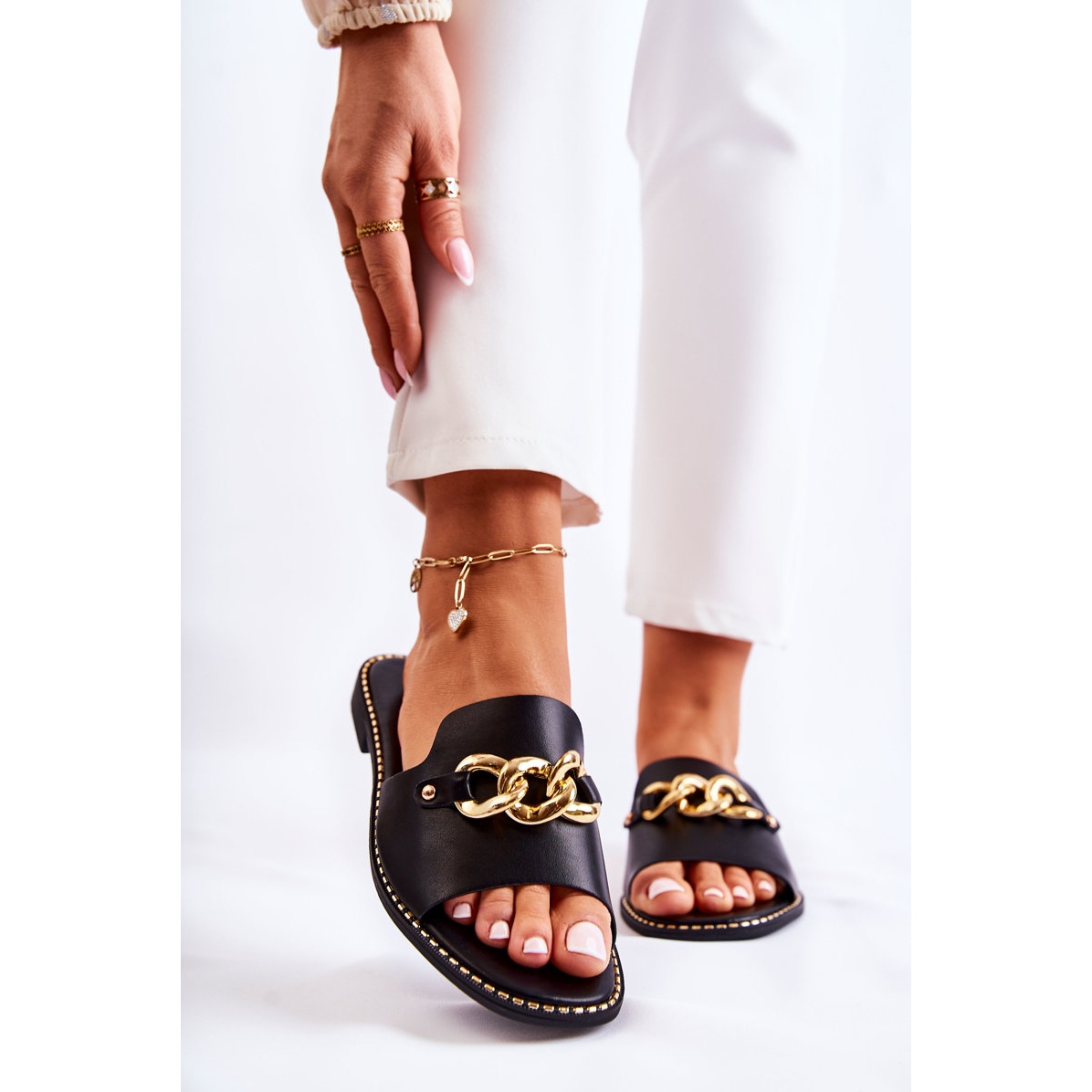 S.Barski Modne crne finess papuče s lančićem na ravnoj peti crna