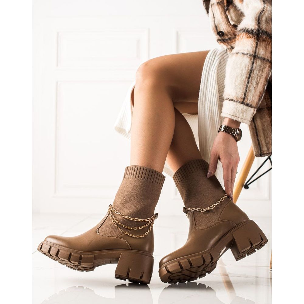 **Ideal Shoes Modne Chelsea čizme s lancem, smeđe – klasa i udobnost**