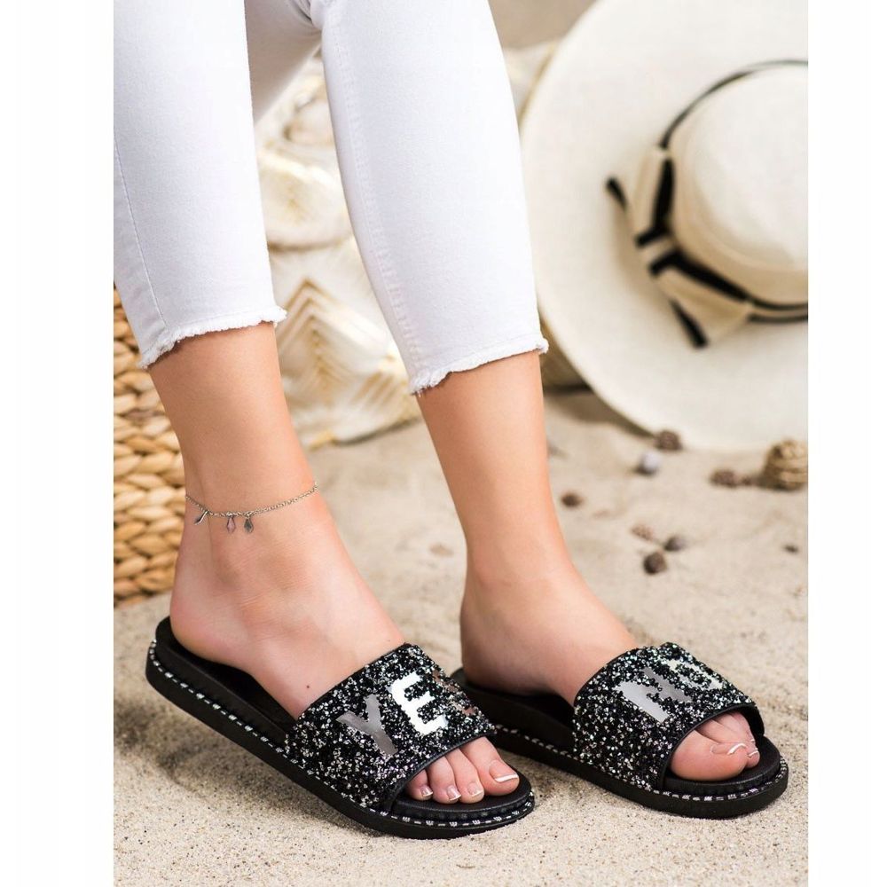 Pojedinosti: SHELOVET Modne papuče s kristalima crna srebro