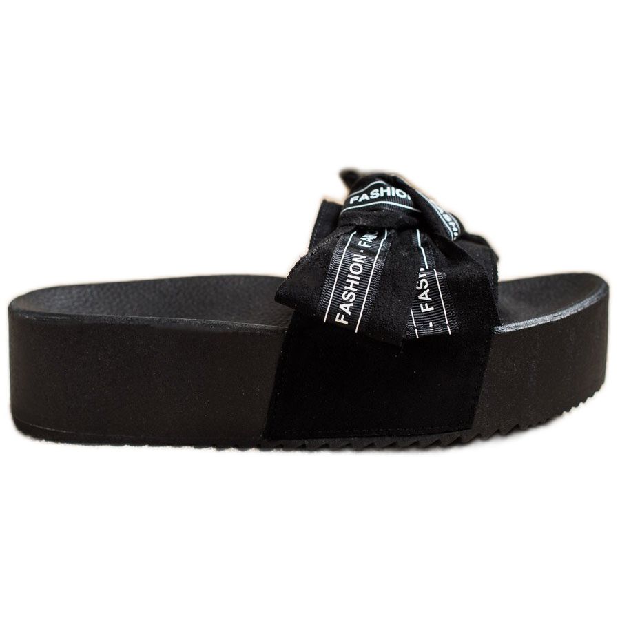 SHELOVET Modne papuče s mašnom crna