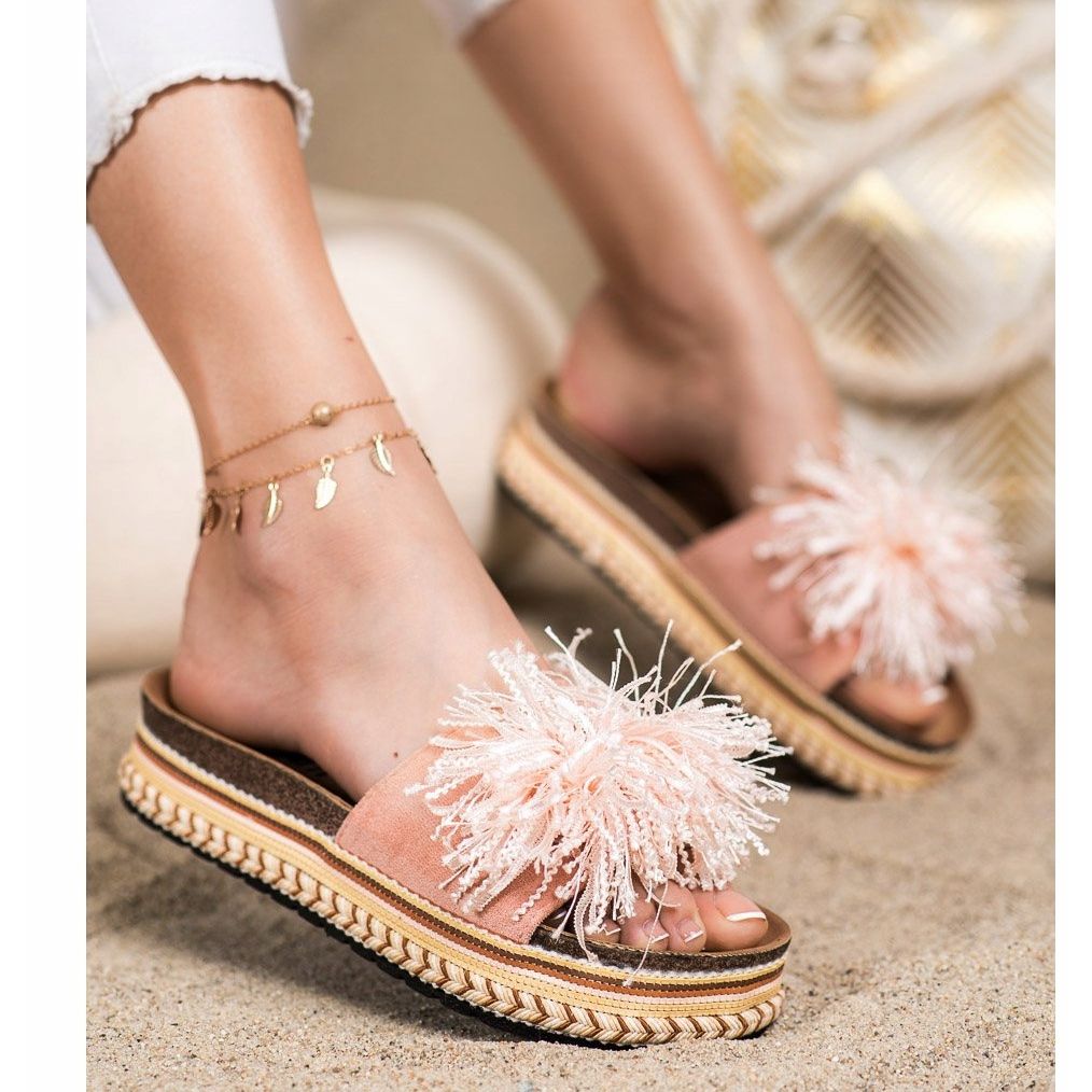 SHELOVET SHELOVET Modne papuče s resama ružičasta