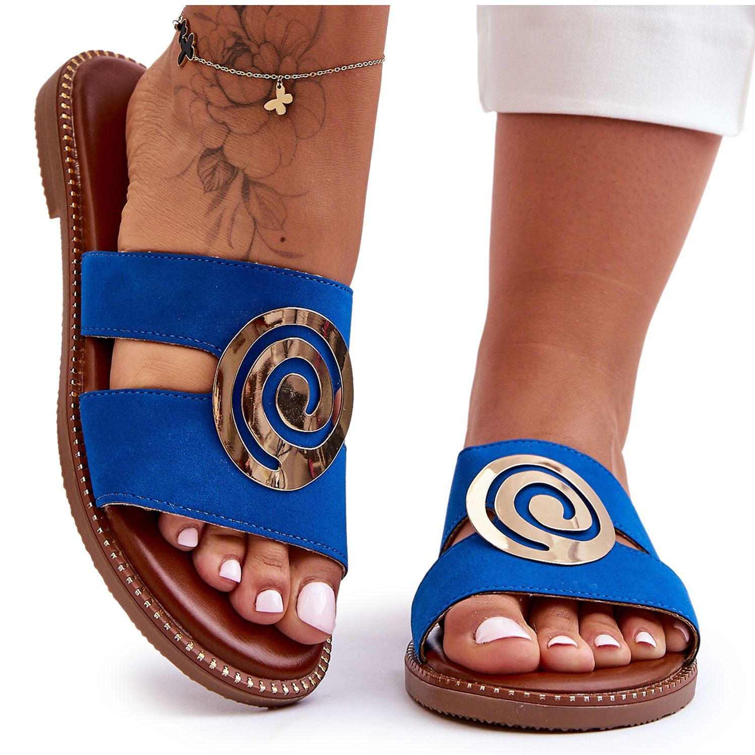 Inna marka Modne papuče s ukrasom u zrcalu, plave boje dubokog daha plava