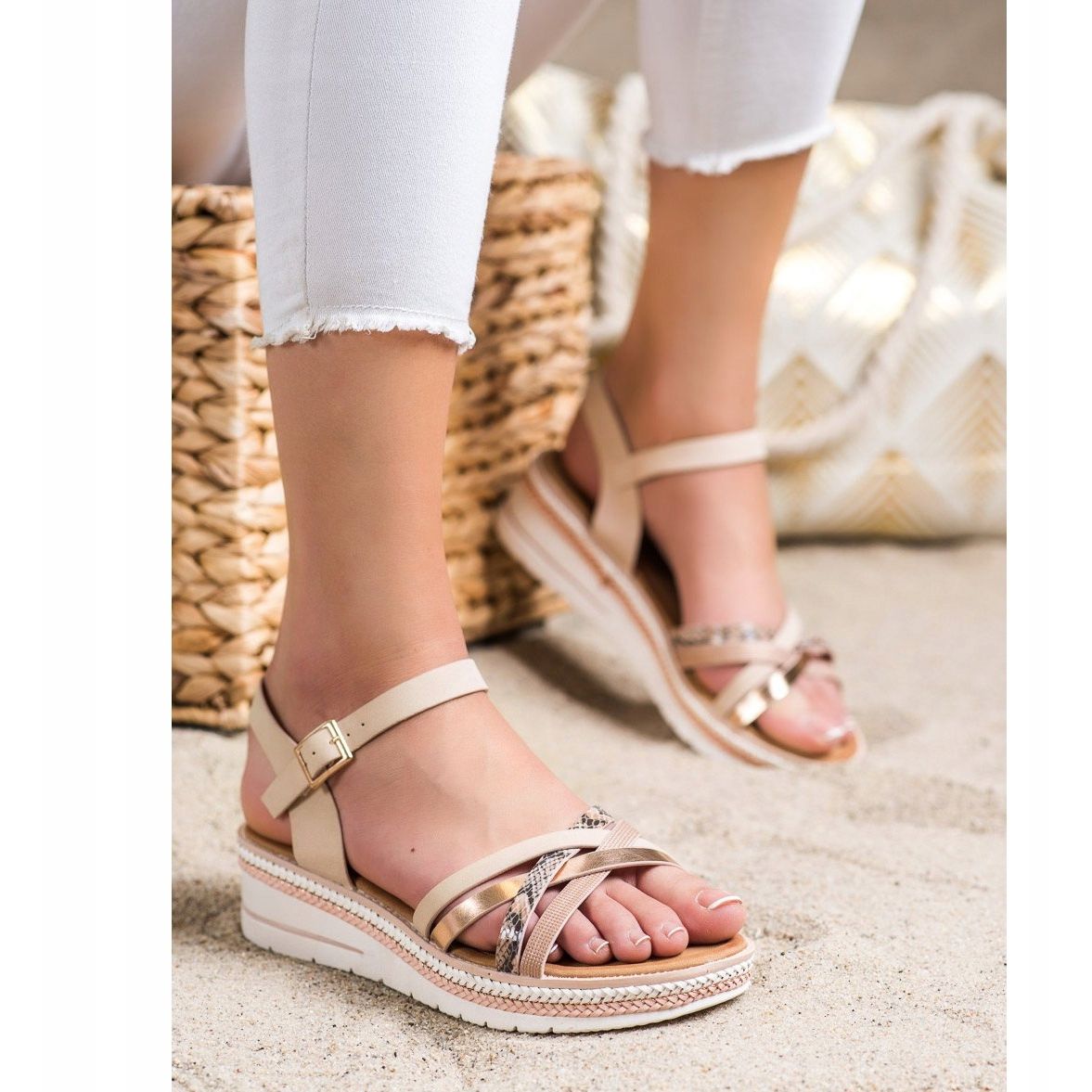 Groto Gogo Groto Gogo Modne sandale na niskom klinu bež ružičasta
