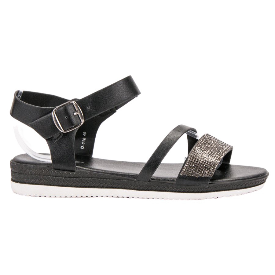 SHELOVET Modne sandale s kubnim cirkonijem crna