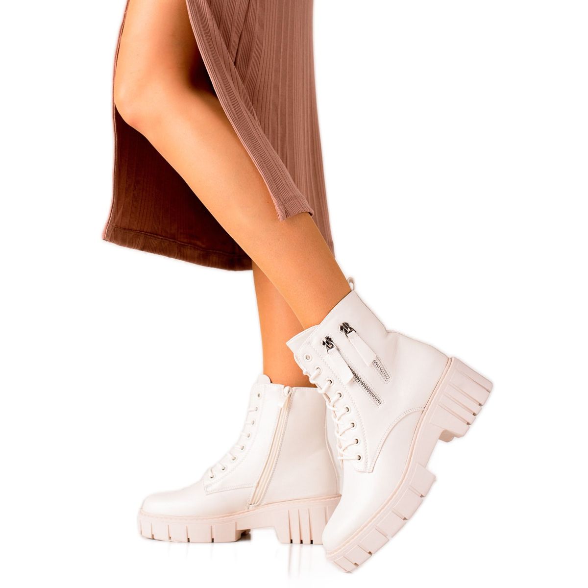 Goodin Goodin Modne traperice s ukrasnim patentnim zatvaračima bež