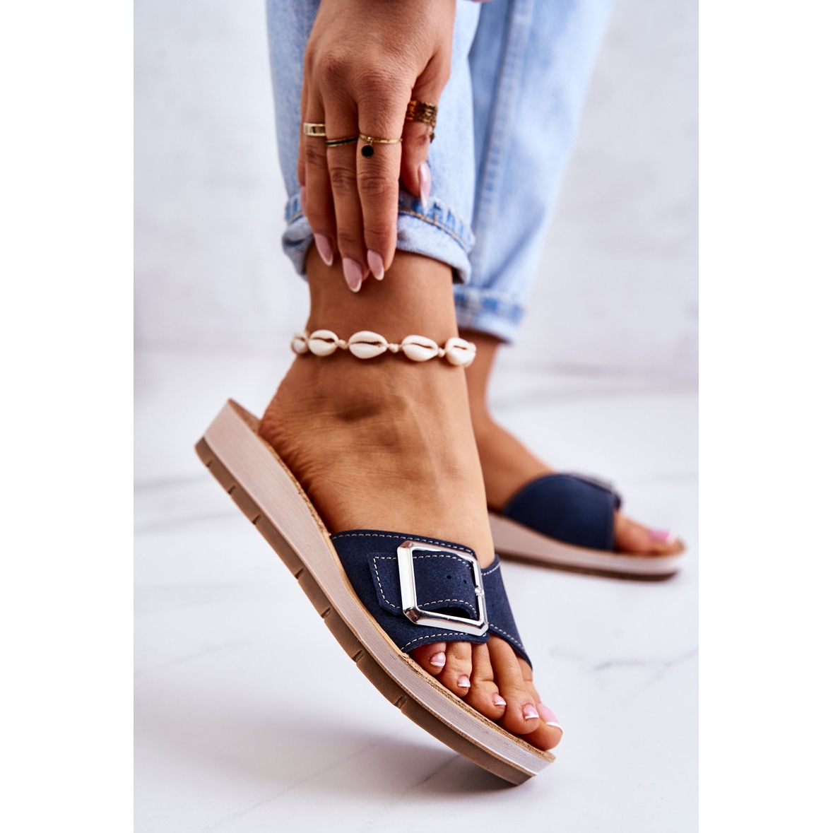 Pojedinosti: Modne ženske papuče s kopčom Inblu CP000031 Mornarsko plave tamnoplava