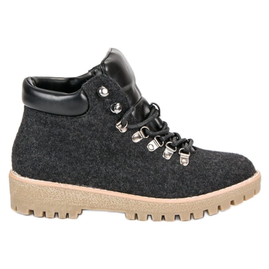 Crne tenisice, izrađene od visokokvalitetne tkanine, ne samo da privlače pažnju, već i učinkovito štite od hladnoće, vjetra i snijega. Njihov ukrućeni gležanj osigurava stabilnost i udobnost, što ih čini idealnim izborom za žene koje vode aktivan stil života. Vezanje na vezanje omogućuje savršeno pristajanje uz nogu, a ravna peta od 4 cm dodaje udobnost tijekom svakodnevnih planinarenja.
