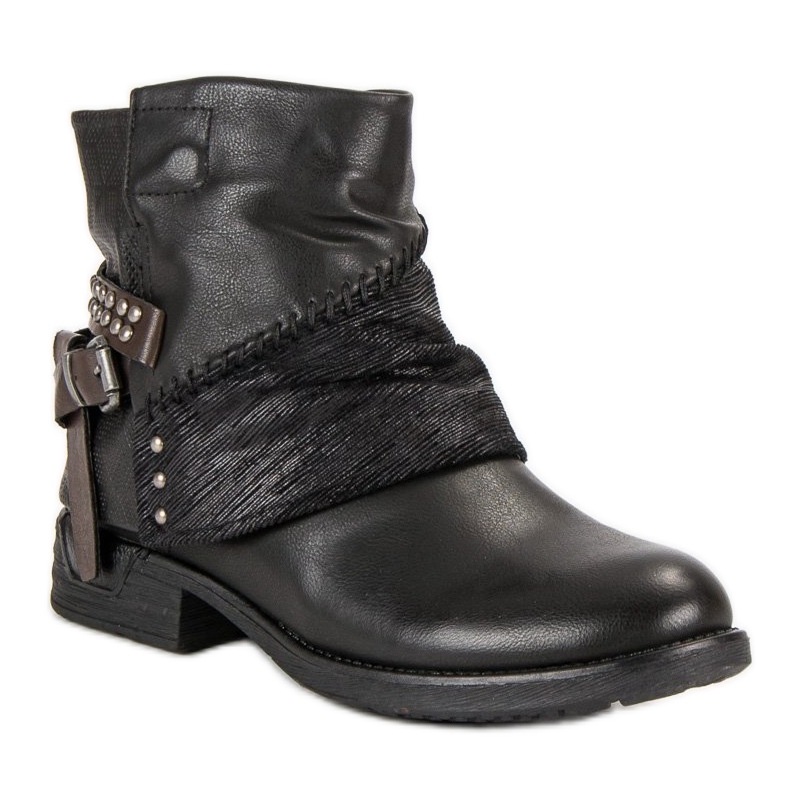 Ponovno otkrijte modu uz naše jedinstvene crne ženske radnice! Ove elegantne cipele ne samo da privlače pozornost svojim originalnim dizajnom, već također pružaju udobnost i praktičnost. Gornji dio iznad gležnja pomno je obrubljen dodatnim elementima od ekološke kože, što im daje jedinstven, rock karakter.
