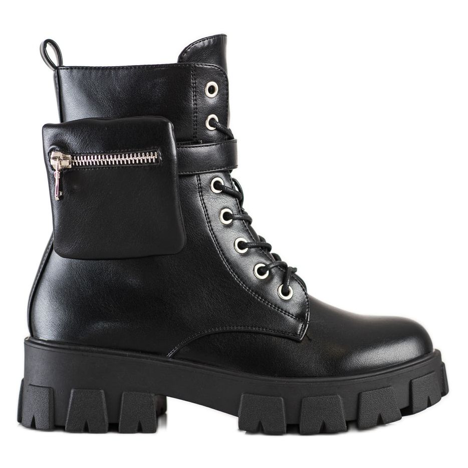 Crne radničke cipele izrađene od visokokvalitetne eko kože osiguravaju izvrstan izgled i udobnost nošenja. Okrugli vrh i mekana ugrađena peta čine ih iznimno udobnima, a njihov klasičan, minimalistički dizajn bez uzorka savršeno se uklapa u aktualne modne trendove. Gornja visina od 16 cm i širina od 20 cm savršeno pristaju uz nogu.
