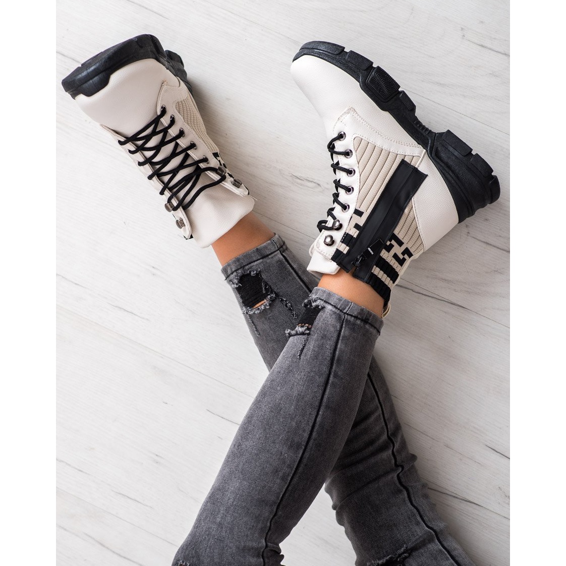 Otkrijte stil i udobnost uz SHELOVET Lace-up Workers Fashion gležnjače u modernoj bijeloj i crnoj boji. Ove jedinstvene ženske cipele spajaju casual i sportski karakter, savršeno se uklapajući u najnovije trendove.