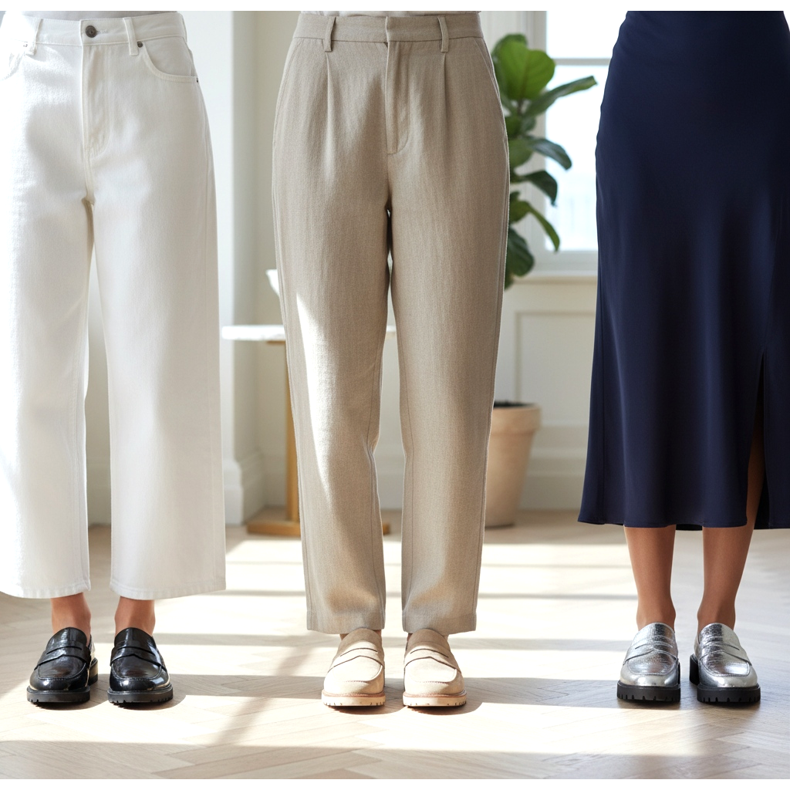 Viši mogu slobodno eksperimentirati s jasnim kontrastima - crne loaferice uz bijele hlače ili metalik cipele uz tamnu midi suknju izgledaju fenomenalno kada je stas visok i vitak.