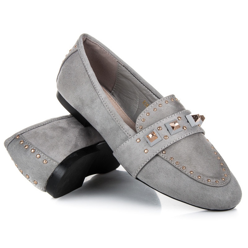 Upoznajte sive mokasinke iz Vicesa - savršen izbor za žene koje cijene udobnost i moderan stil. Ove elegantne cipele, izrađene od ekološke antilop kože, savršene su za svakodnevne i manje formalne situacije. Zahvaljujući slip-on dizajnu, obuvanje je brzo i praktično.