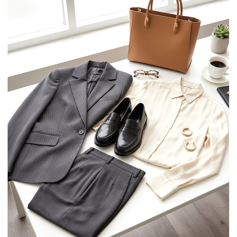 Loaferice + žensko odijelo kombinacija je koju gotovo nemoguće pogriješiti. Elegantno odijelo prigušene boje u kombinaciji s klasičnim natikačama daje profesionalan i moderan efekt. Više žene mogu odabrati modele s ravnim potplatom, dok će niže žene sjajno izgledati u natikačama s platformom.
