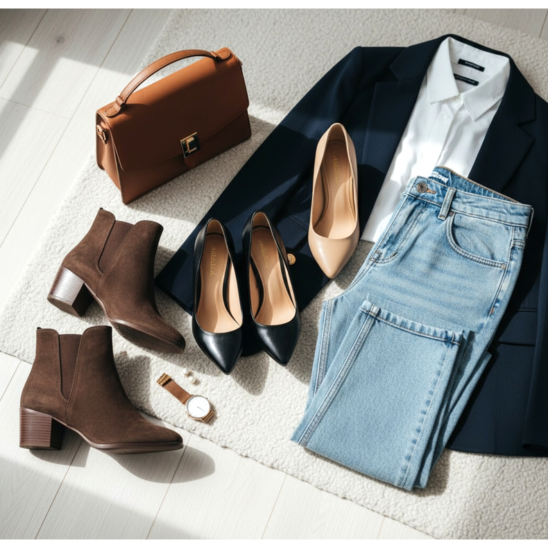 Elegantne cipele uz mom jeans za ured