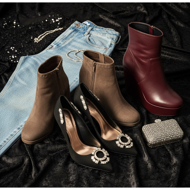 Savršeno rješenje bit će visoke potpetice prigušenih boja koje možete uskladiti s ostatkom outfita. Idete li na večernju zabavu, možete odabrati modele s upečatljivim ukrasima - na primjer, s kristalima ili metalik naglascima.